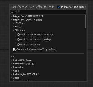 イベントを追加>コリジョン>各オーバーラップのイベントをブループリントに追加する。