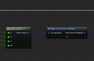 先ほど設定したタイムラインからの値を接続してSatulationをアニメーションさせる。