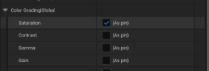 右側の詳細パネルでColor Grading GlobalのSatulationにチェックを入れる。