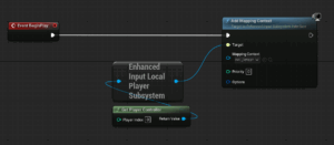 Get Player Contoroller→Enhanced Input Player Subsystem→Add Mapping Contextの順につなぐ